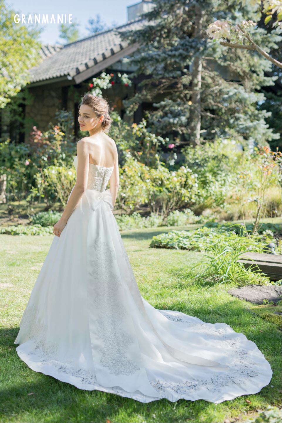 シルエットとフィット感を追求したコルセット構造のドレス。上半身をコンパクトにすっきりと見せ、バストを美しく支えるその効果は、多くの花嫁の味方に。極上の素材から作られる、流れるようなドレープと、最新トレンドを取り入れた小粋なデザインは、世界のセレブリティからも愛されています。