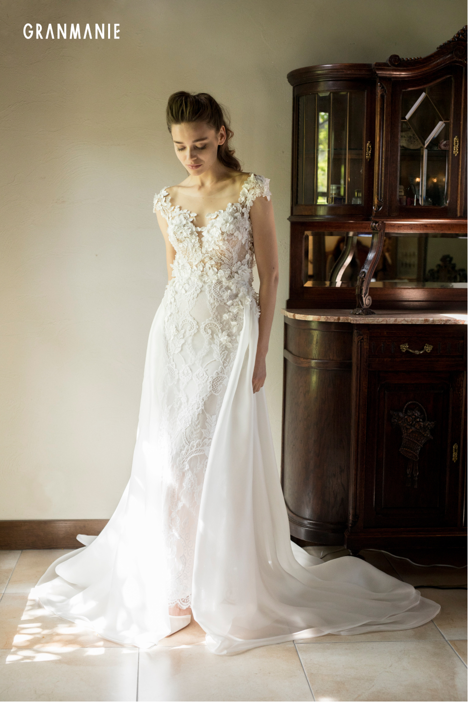 洗練とロマンティックを併せ持つ、MODERN TROUSSEAUのウエディングドレス。滑らかなシルクやオーガンジーが描くエレガントなシルエットに、繊細なレースと大胆なカッティングが重なり合い、現代の花嫁に相応しい気品と存在感を演出します。身に纏うたびに、自分らしさに満ちた輝きを纏い、特別な一日を記憶に残る瞬間に変えてくれます。