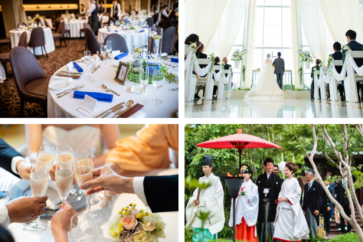 結婚式場は大きく分けて「ホテル」「専門式場・ゲストハウス」「レストラン」「神社」の4タイプがあります。