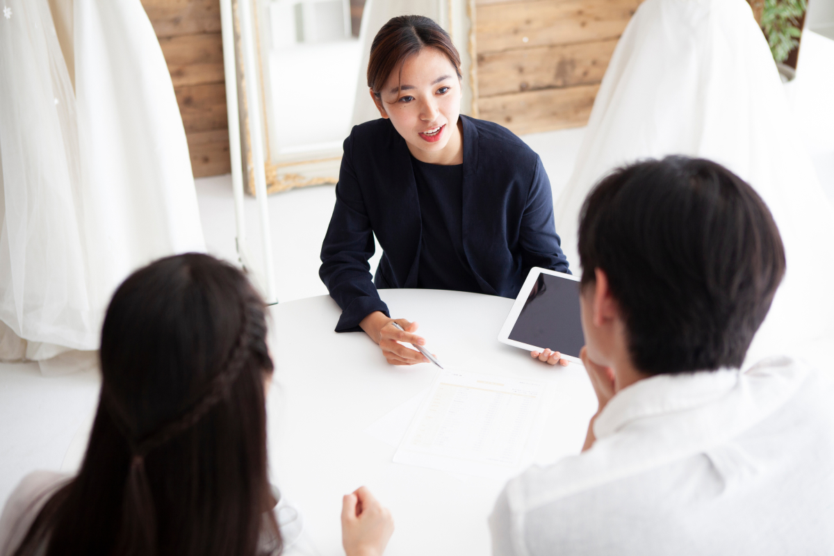 相談は何度でも無料です。式場成約時には最大10万円の祝い金で、費用面もサポートします。