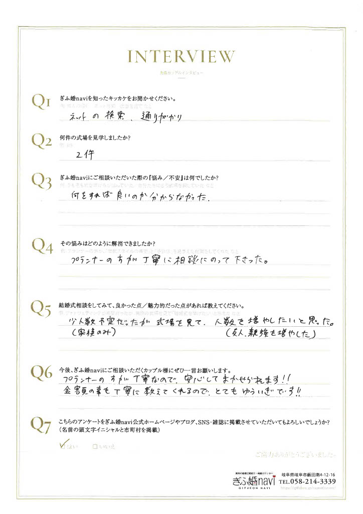 今回はぎふ婚naviにご相談いただき、誠にありがとうございました。