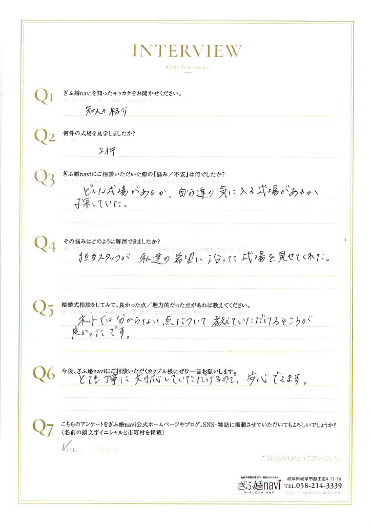 今回はぎふ婚naviにご相談いただき、誠にありがとうございました。