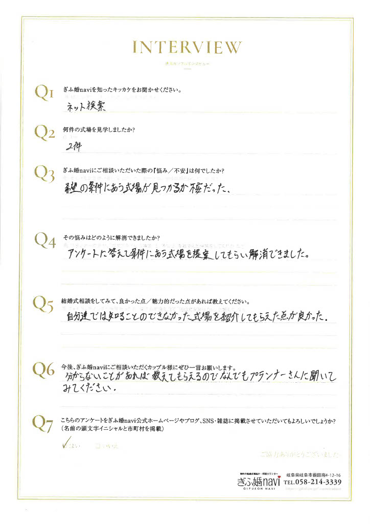 今回はぎふ婚naviにご相談いただき、誠にありがとうございました。